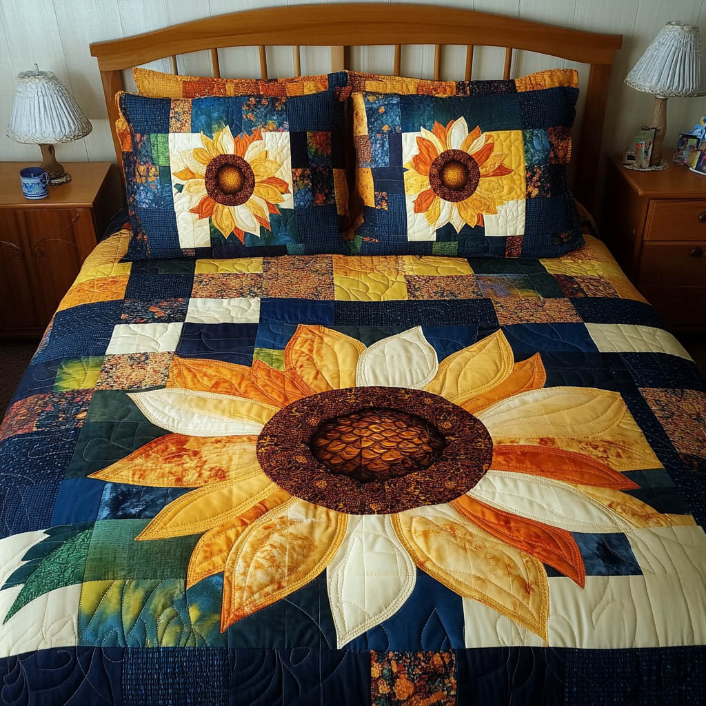 Blooming Sunflower 3-Piece Quilted Bedding Set NCU0TL1729