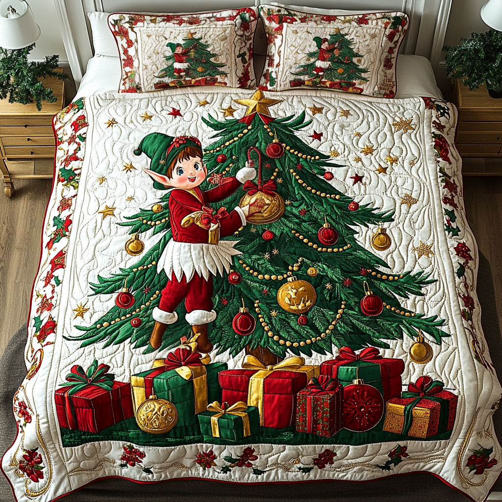 Elves of Christmas Joy 3-Piece Quilted Bedding Set NCU0PTT041