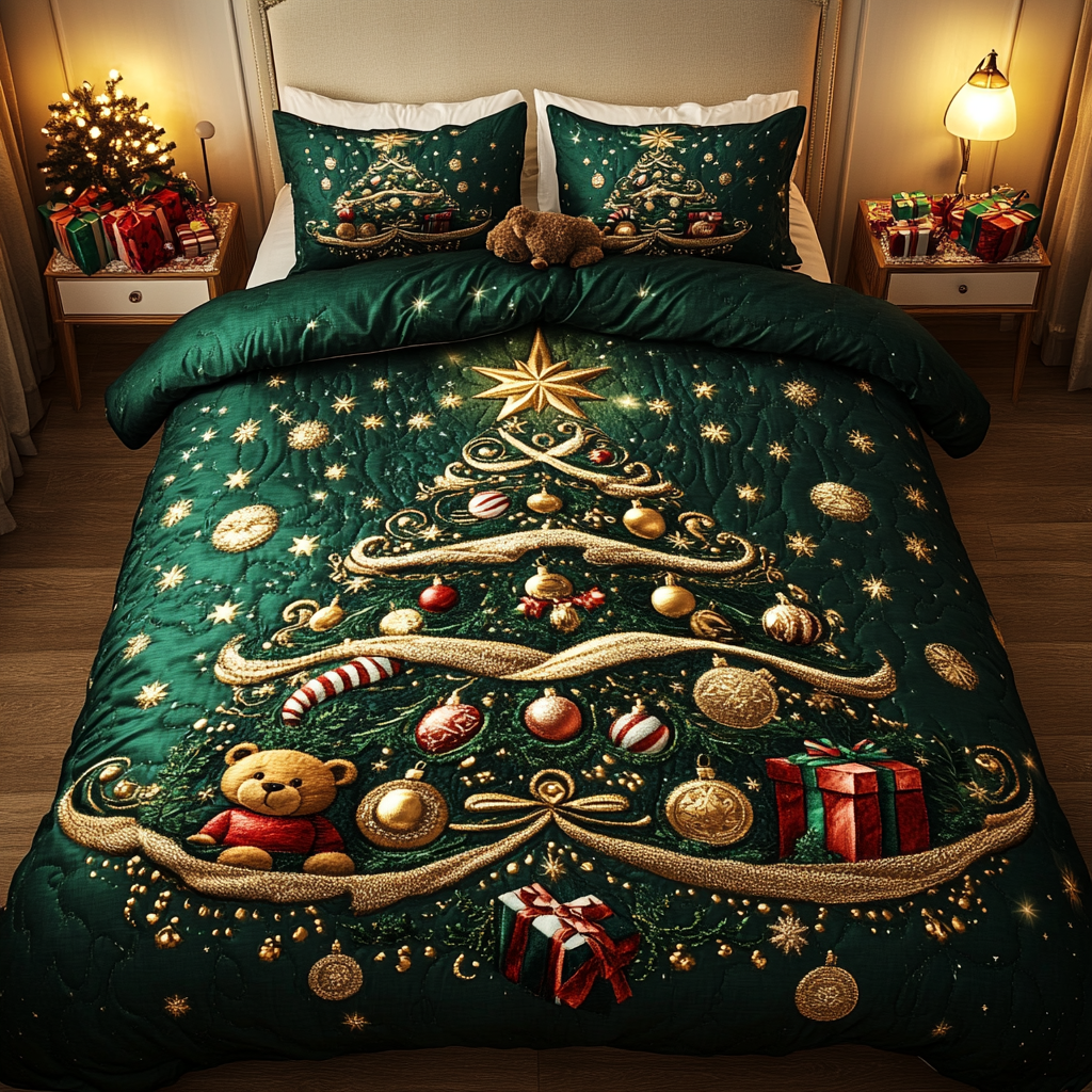 Evergreen Glow 3-Piece Quilted Bedding Set NCU0DDK057