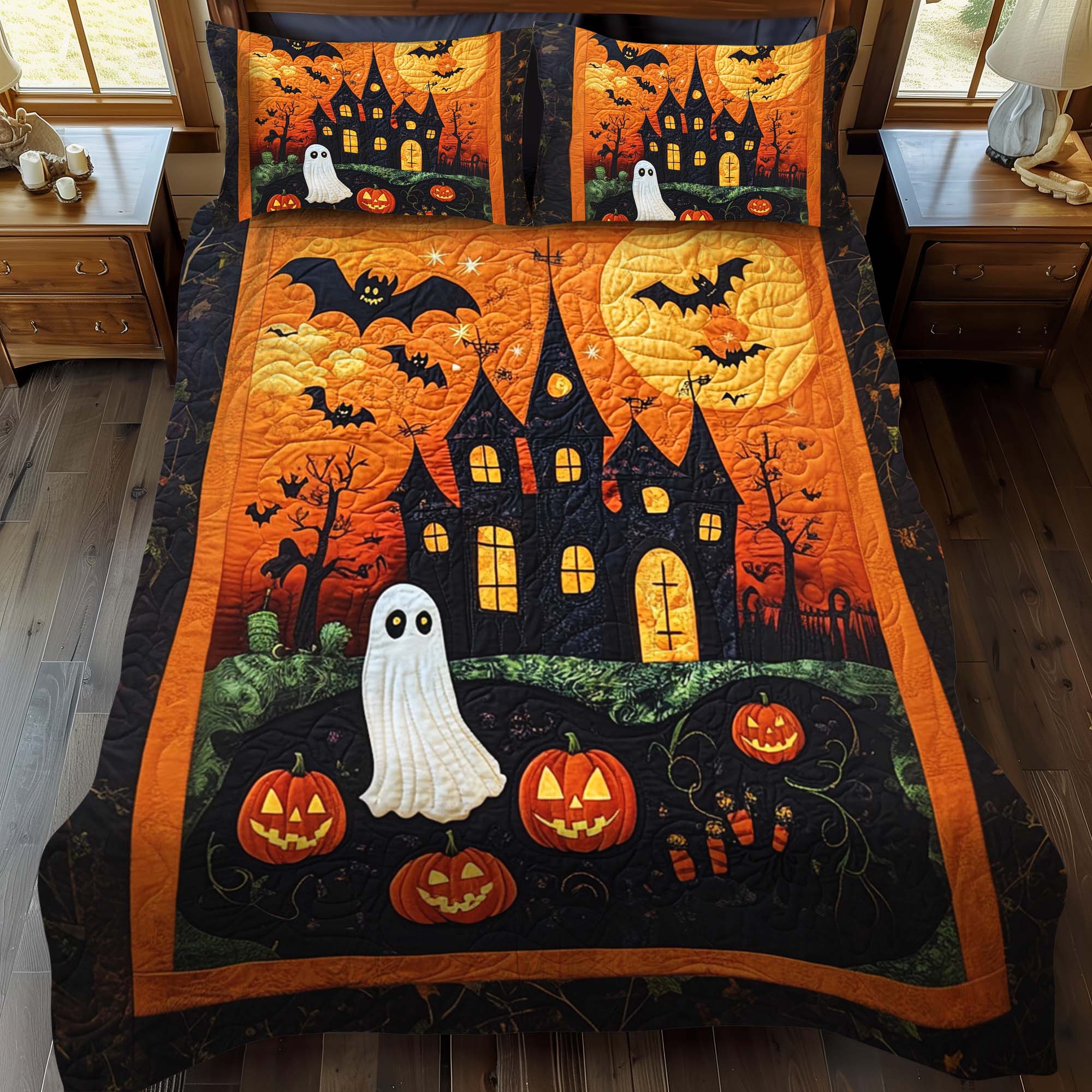 Jack O Lantern 3-Piece Quilted Bedding Set NCU0NT606