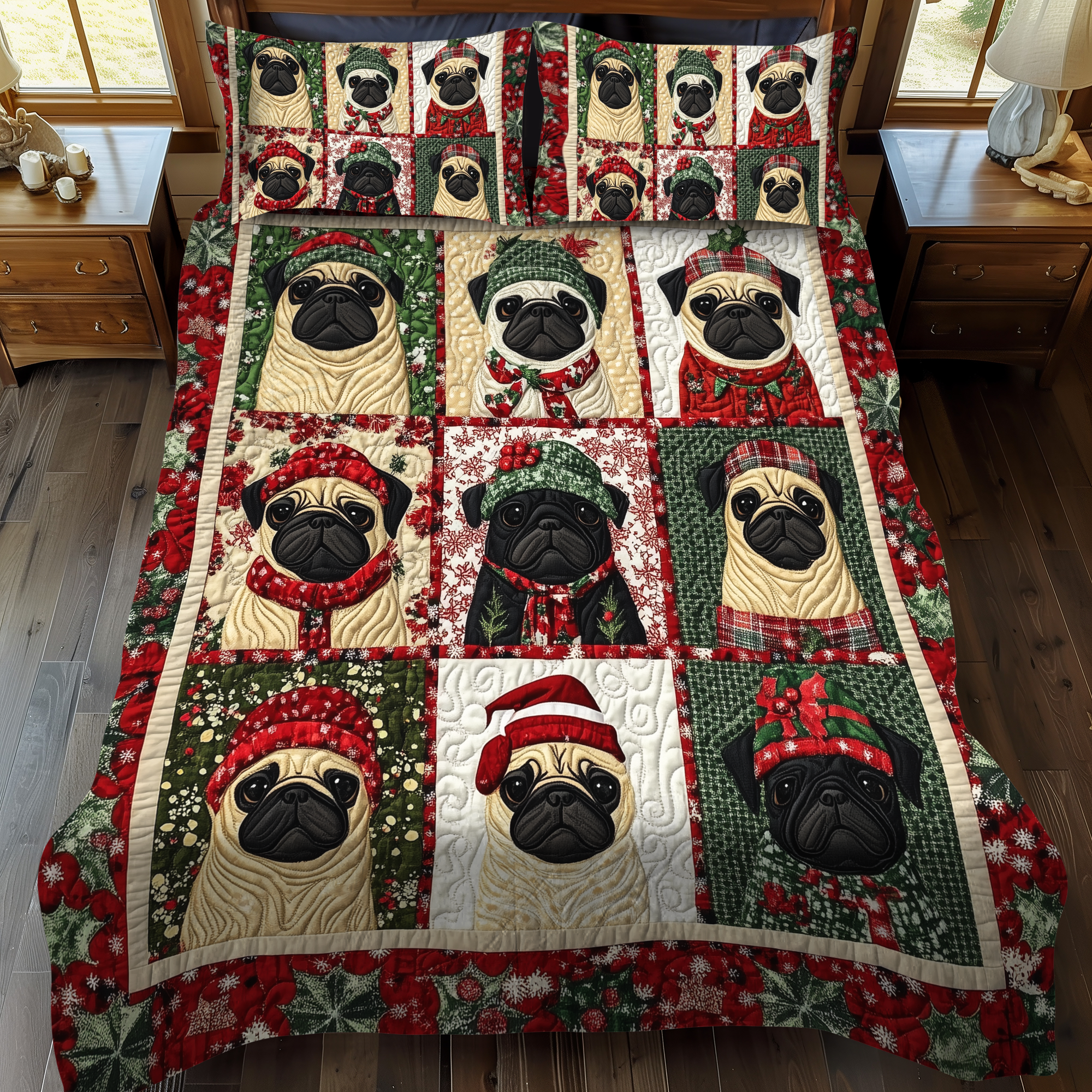 Pug Winter Wishes 3-Piece Quilted Bedding Set NCU0VL591